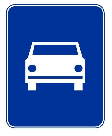 Znak D-7 Droga ekspresowa Oznacza początek lub kontynuację drogi ekspresowej. Umieszczona pod znakiem tabliczka T-1a wskazuje odległość do początku drogi. Umieszczona pod znakiem tabliczka T-28 wskazuje, że za przejazd pobierane są opłaty. |