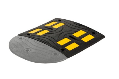 Gumowy próg zwalniający o wymiarach 600x500x50 mm. Długość najazdowa to 600 mm (60 cm), szerokość 500 mm (50 cm), wysokość 50 mm (5 cm). Elementy progów po łączeniu ze sobą tworzą kompletny próg o indywidualnie ustalanej szerokość. Progi zwalniające są jedną z najskuteczniejszych metod na uspokojenie ruchu. Dzięki oznaczeniu taśmą odblaskową 3M progi są widoczne, zarówno w dzień jak i w nocy. Specjalnie zaprojektowane elementy montażowe gwarantują trwałe mocowanie progów do drogi.