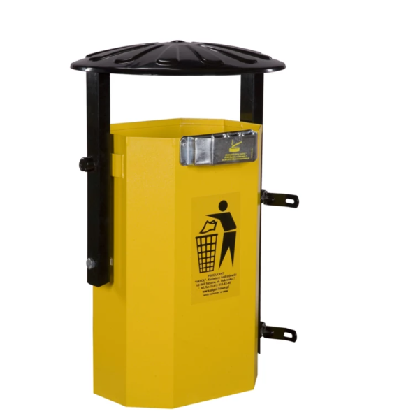 Zwarta forma i estetycznie zaprojektowany daszek ochronny zabezpieczają wnętrze pojemnika przed deszczem i wiatrem oraz ograniczają możliwość wrzucania dużych odpadów. Możliwość malowania w dowolnym kolorze z palety RAL pozwala na pełne dopasowanie do otoczenia architektonicznego lub identyfikacji wizualnej inwestora.