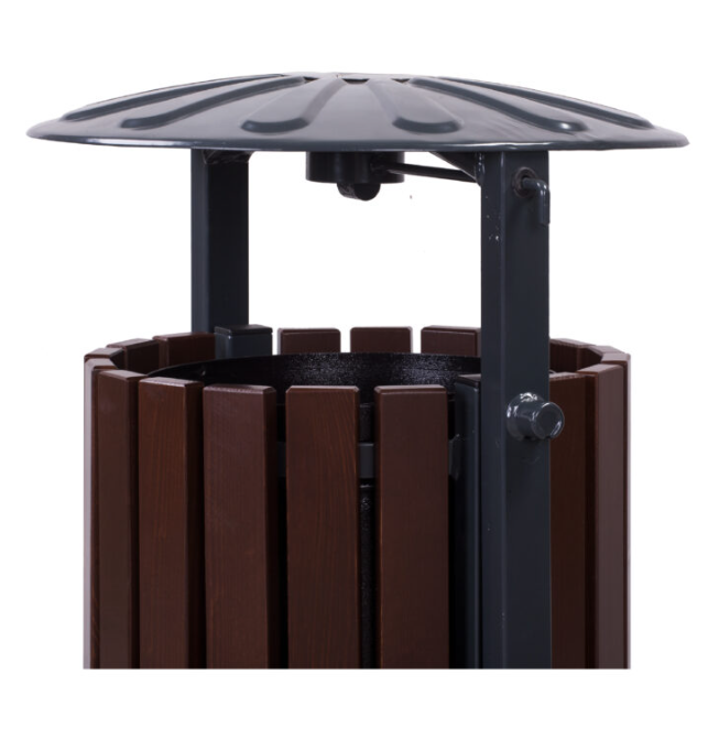Kosz wyposażony jest w daszek zabezpieczający przed opadami oraz rozwiewaniem odpadów, a także zapobiegający wrzucaniu odpadów o dużych gabarytach. Zawieszana konstrukcja umożliwia szybki demontaż i opróżnianie wkładu.