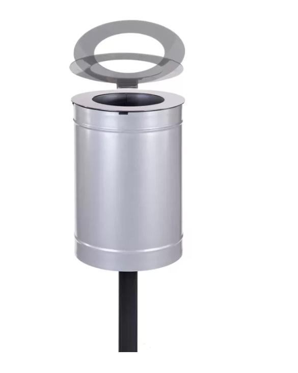 Model KOS-02 wyróżnia się zamkniętą, zwartą bryłą oraz nowoczesną sylwetką. Dzięki zastosowaniu blachy o grubości 2 mm (daszek) i 1 mm (pojemnik), kosz doskonale sprawdza się w przestrzeniach narażonych na uszkodzenia mechaniczne i akty wandalizmu.