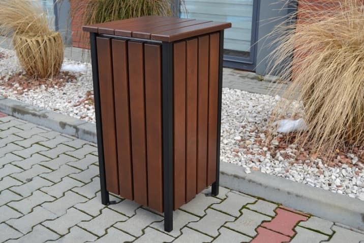 Elementy drewniane są starannie przygotowane oraz zabezpieczone powłoką ochronną, która podkreśla naturalny wygląd drewna i chroni je przed wpływem warunków zewnętrznych. Dzięki temu kosz zachowuje estetyczny wygląd przez długi czas użytkowania.