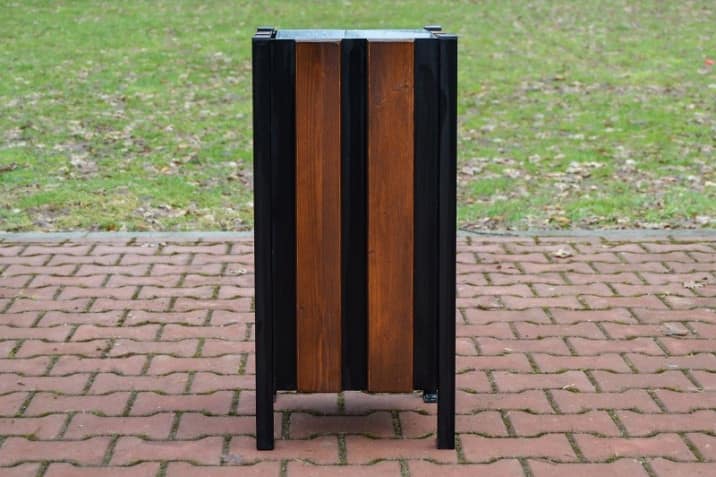 Elementy drewniane są starannie przygotowane oraz zabezpieczone powłoką ochronną, która podkreśla naturalny wygląd drewna i chroni je przed wpływem warunków zewnętrznych. Dzięki temu kosz zachowuje estetyczny wygląd przez długi czas użytkowania.