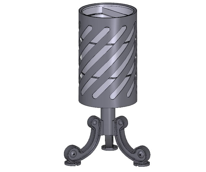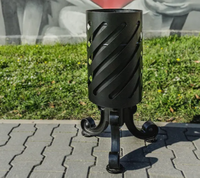 Kosz Prague III to stylowy element małej architektury, który łączy żeliwną solidność z nowoczesnym wykończeniem. Podstawę tworzą trzy dekoracyjne odlewy żeliwne, gwarantujące stabilność i odporność na intensywne użytkowanie w przestrzeni miejskiej.