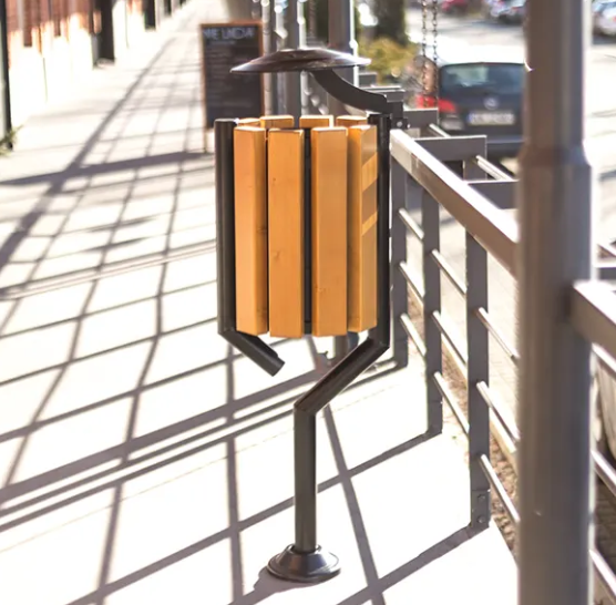 Dzięki zamontowanej popielnicy, kosz staje się jeszcze bardziej praktyczny, umożliwiając użytkownikom wygodne pozbywanie się niedopałków w sposób dyskretny i estetyczny. To rozwiązanie znacząco podnosi komfort i czystość przestrzeni miejskiej, zapewniając jednocześnie estetyczny wygląd.