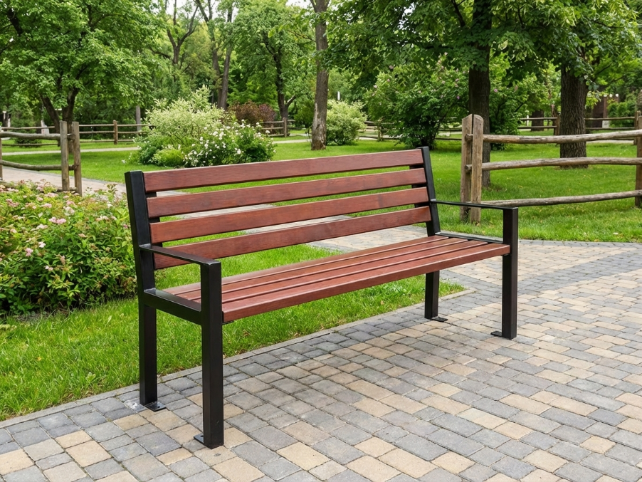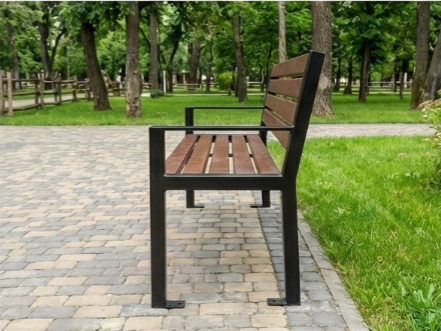 Możliwość wyboru kolorystyki drewna oraz konstrukcji stalowej pozwala dopasować ławkę do charakteru otoczenia i indywidualnych potrzeb użytkownika.