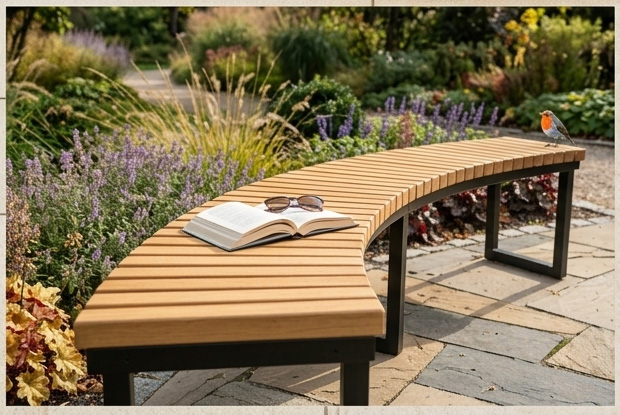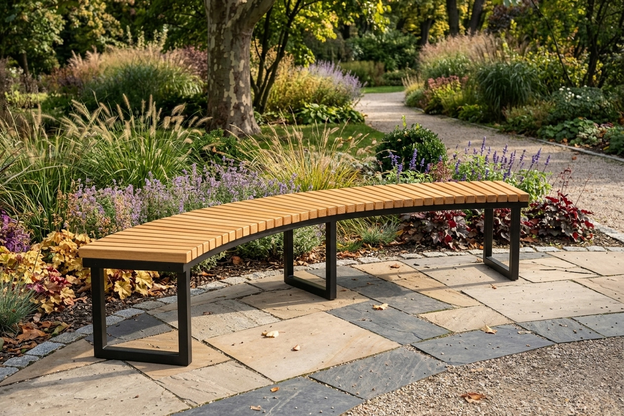 - Kształt ławki: 1/4 koła o średnicy 300 cm