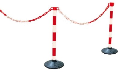 Słupek odgradzający z polietylenu. Do łączenia łańcuchem plastikowym lub taśmą ostrzegawczą.