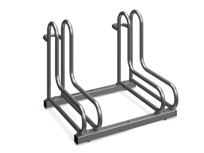 Funkcjonalny stojak na dwa rowery z możliwością ustawienia kąta parkowania – 90° lub 45°. Opcja ukośnego montażu doskonale sprawdza się w miejscach z ograniczoną przestrzenią, np. przy ścianach, wąskich chodnikach czy ciągach komunikacyjnych. Stojak zapewnia stabilne podparcie i umożliwia przypięcie roweru za ramę.