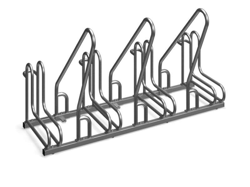 Funkcjonalny stojak na 4 rowery z wysokimi barierkami (80 cm), umożliwiający przypięcie roweru za ramę – bez względu na jego rozmiar czy rodzaj zapięcia. Sprawdzi się doskonale w przestrzeni publicznej i przy budynkach mieszkalnych.