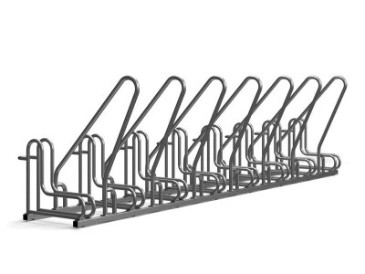 Stojak umożliwia wygodne i bezpieczne parkowanie do 8 rowerów, wyposażony dodatkowo w barierkę zwiększającą funkcjonalność i możliwość zamocowania dodatkowego zabezpieczenia. Idealny do szkół, urzędów, osiedli, centrów handlowych.
