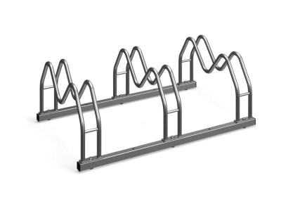 Stojak na 3 rowery z możliwością regulacji kąta ustawienia roweru (od 45° do 90°). Montaż obustronny umożliwia parkowanie z obu stron stojaka, co sprawdza się szczególnie dobrze w wąskich przestrzeniach lub wzdłuż ścian.