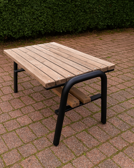 Dzięki klasycznym proporcjom oraz długości 225 cm, stół P-1 doskonale komponuje się z otoczeniem – niezależnie czy to plac miejski, ogród czy teren wypoczynkowy. Praktyczna półka pod blatem zwiększa funkcjonalność mebla.