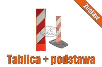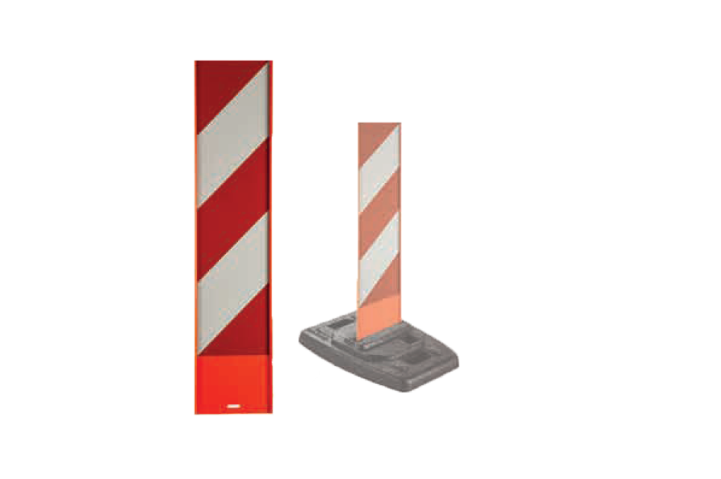 Gumowa podstawa jest wyposażona w przyssawki, które dodatkowo zapobiegają przesuwaniu oraz specjalny zamek uniemożliwiający wypadnięcie tablicy, dzięki którym odporność na najeżdżanie jest jeszcze większa. Ponadto posiada gniazdo na baterie i możliwość zamontowania lamp ostrzegawczych.