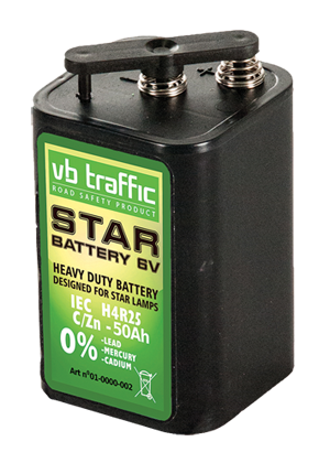 Bateria do lamp drogowych 6V/50Ah nie zawiera ołowiu, rtęci ani kadmu. Jest optymalna do zestawu z drogowymi lampami ostrzegawczymi. Może być magazynowana przez rok w temperaturze powyżej 0 st. C od daty produkcji. Bieguny baterii są zabezpieczone i każda bateria jest indywidualnie foliowana.