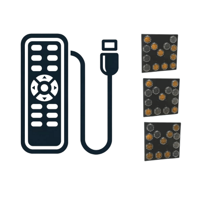 Pilot zdalnego sterowania zaprojektowany specjalnie do użytku z tablicą kierunkową LED opisaną wcześniej. Idealny do kontrolowania ustawień tablicy z bezpiecznej odległości.